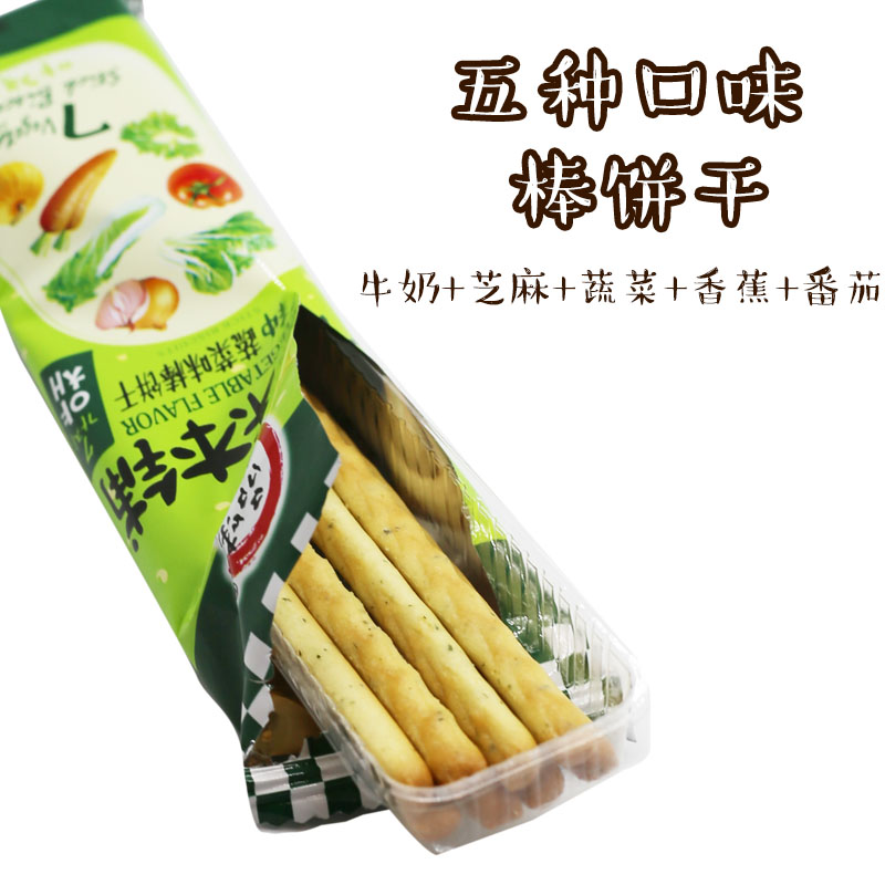 Seven Vegetable Taste Sticks Cookies Black Sesame Taste Sticks Cookies Banana Milk Stick Cookies Vegetable Taste Tomato Stick Cookies Supplement Calcium Pure Milk Baton Biscuit for Digestive Lactic Acid Bacteria Taste Baton
