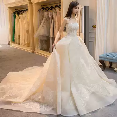 Chest pregnant women light wedding dress 2021 new long trailing one word shoulder princess dream bride wedding Net red shake sound summer