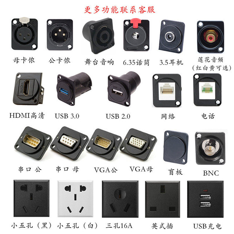 Xinyi four-way national standard two or three power socket 10A card type embedded small five-hole panel socket with protective door