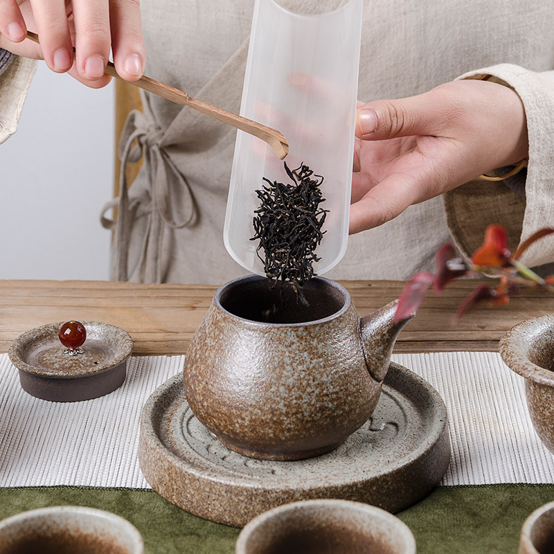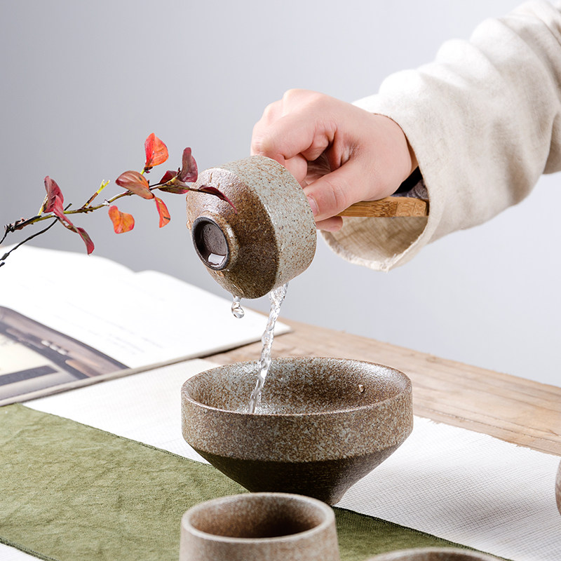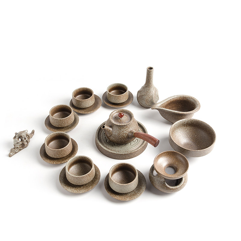 Gov Tea Suit Coarse Pottery Retro China Wind Simple Office Set Group Day Style Home Wood Handle Side Grip Pot-Taobao