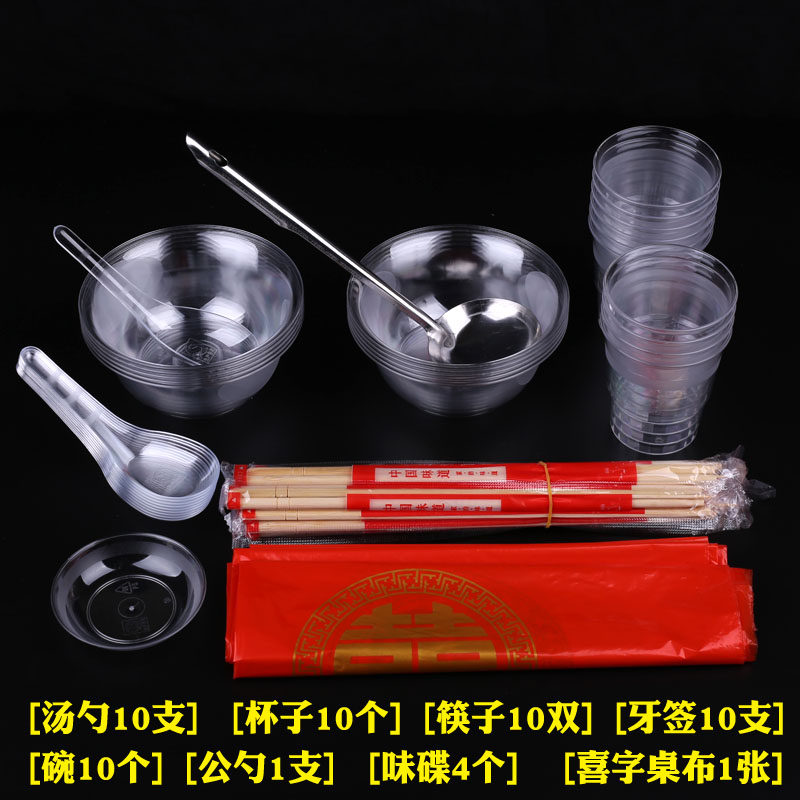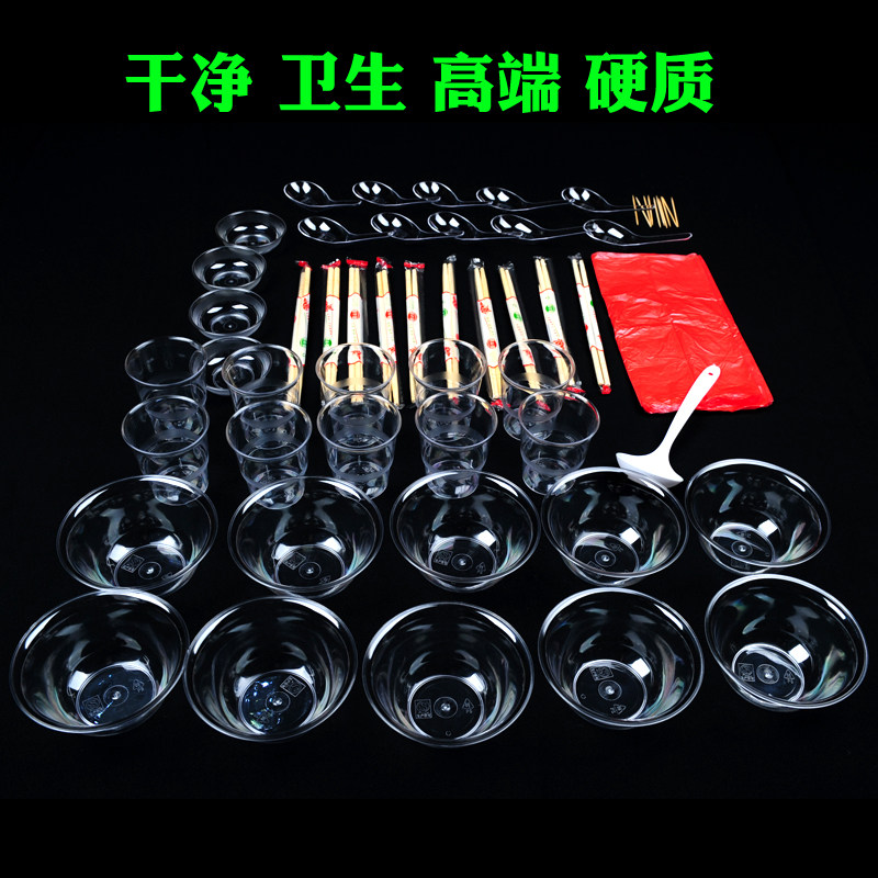 Disposable bowl chopsticks cup set eco wedding barbecue home banquet high-end aviation crystal tableware thickened