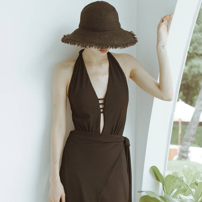 Black veil skirt-W minor bikini black one-piece sexy halter skirt to cover the belly thin two-piece swimsuit women