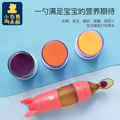 Xiaobai Bear baby rice noodle spoon Rice noodle bottle Non-food tableware feeder Baby silicone extrusion soft spoon tableware