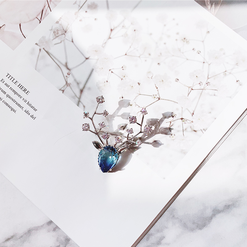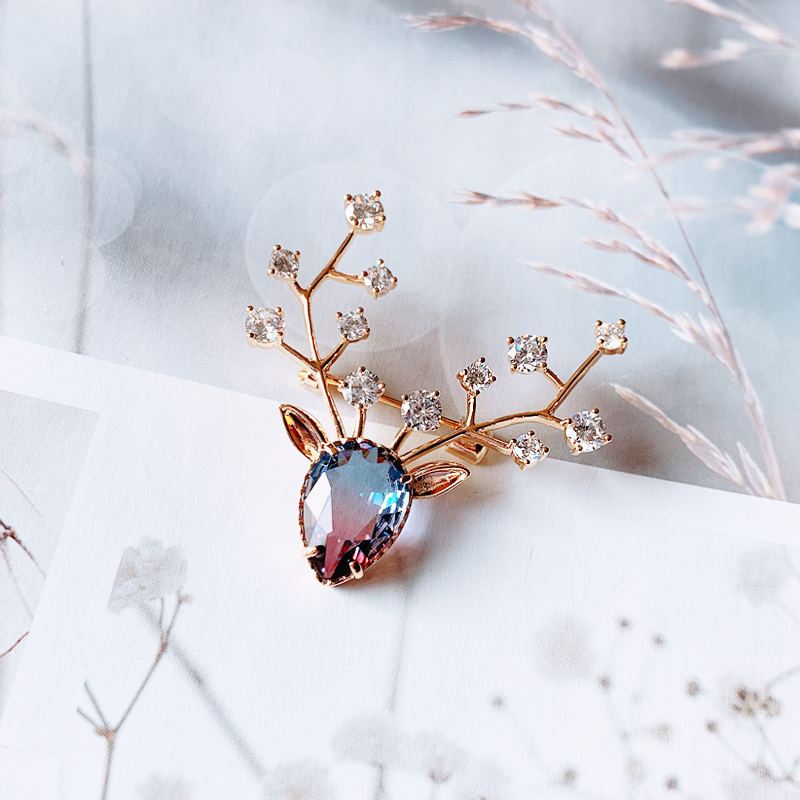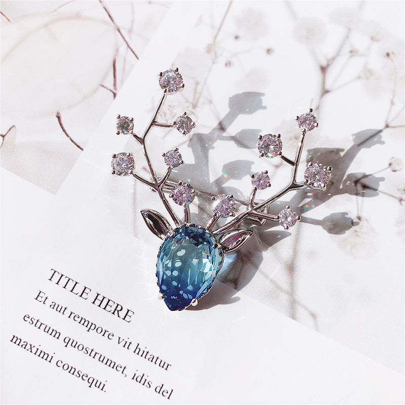 Korean version elegant fashion Sapphire Color Crystal Plum Blossom Deer Chest Needle Delicate High Quality Color Zircons Chest Flower neckline