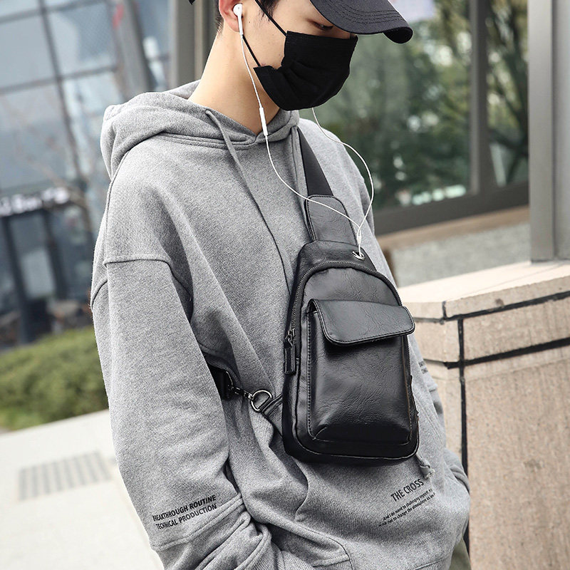 Trendy Fashion Tide Men Casual Street Leather Chest Bag Han Edition Small Bag OUTDOOR SINGLE SHOULDER BAG Inclined Cross Cell Phone Bag