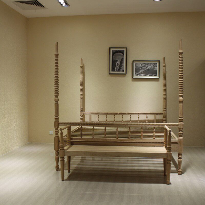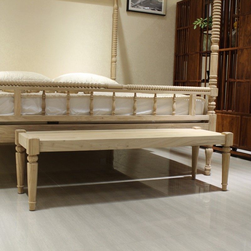 QAY Home Thai Style Bed Tailstool Full Solid Wood Old Elm Wood Changing Shoes Bench Bar Stool Solid Wood Tea Stool Set