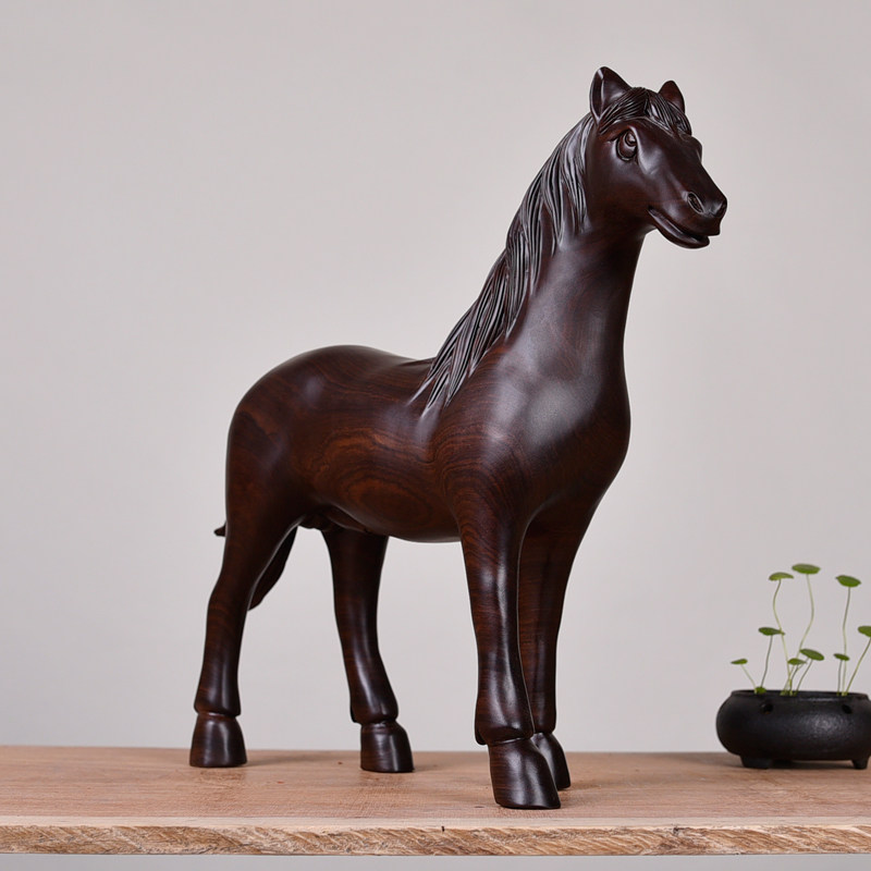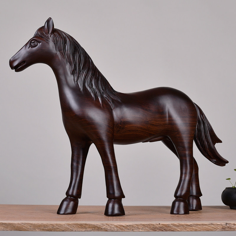 Ebony wood carving horse ornament crafts solid wooden horse to success home accessories office Fengshui lucky horse decoration