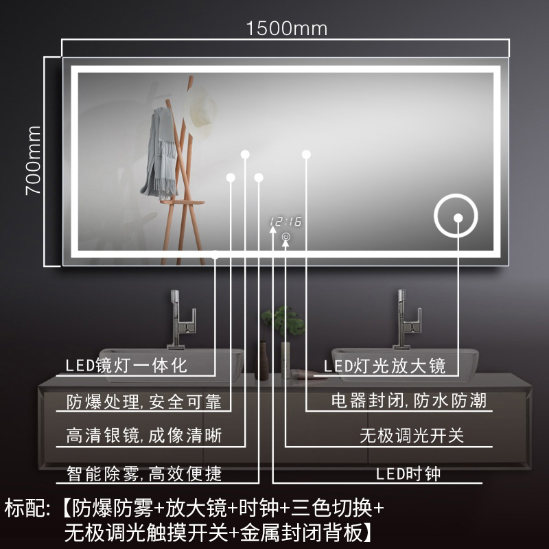 Width 1300 * height 700 stepless dimming anti-fog clock magnifying glass(horizontal section)