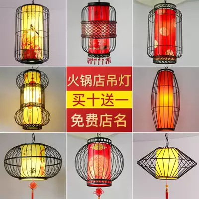 Chinese hot pot restaurant decoration chandelier antique dining room hotel aisle fabric long lantern New Chinese style lamps