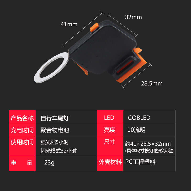Mountain bike road bike taillight highlight heart-shaped taillight broken wind seat tube warning light USB charging taillight