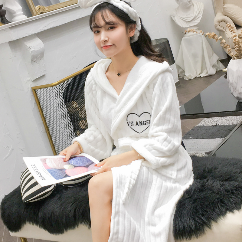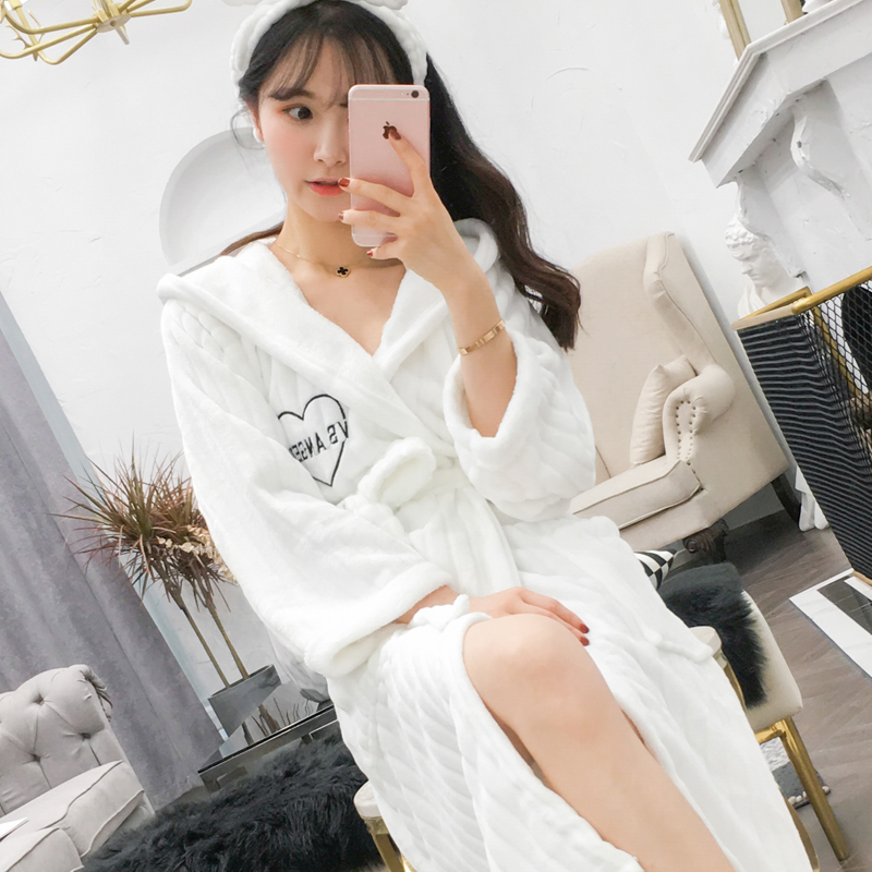 Autumn Winter Sleeping Robes Thickened Coral Suede Seater Pyjamas Woman Sweetness Mid long version Bathrobe flannel Flannel Sleeping Dress Home