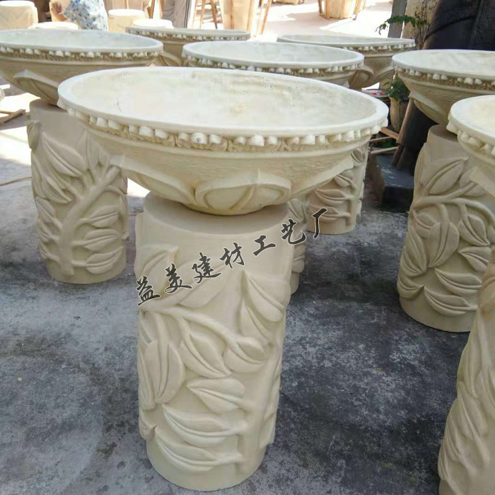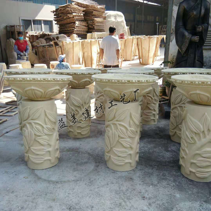 Garden sculpture Sand rock landscape sculpture Pillar pier Flower bowl Sand rock round carving Hotel community courtyard decoration leaf flower pot