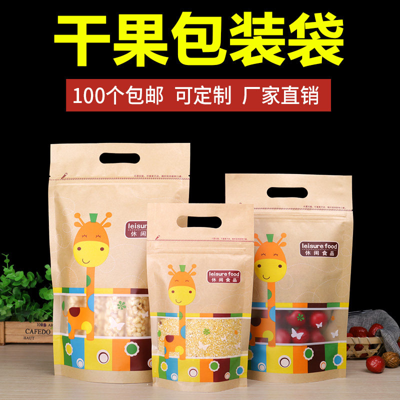 Dried fruit packaging bag self-sealing leisure food bag thickened kraft paper pistachio pine nut snack sealed bag