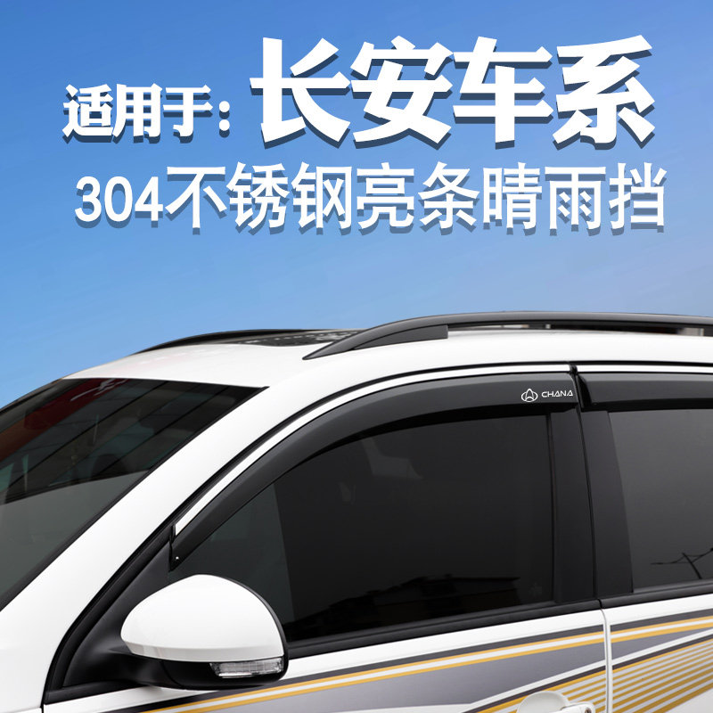 (L' Osang-EV) with a marked stainless steel bright strip rain shield (Euro Livee EV) with a marked stainless steel bright strip rain shield (Europower) with a marked stainless steel bright strip clear rain cover (Ochamp X70A) with a marked stainless steel
