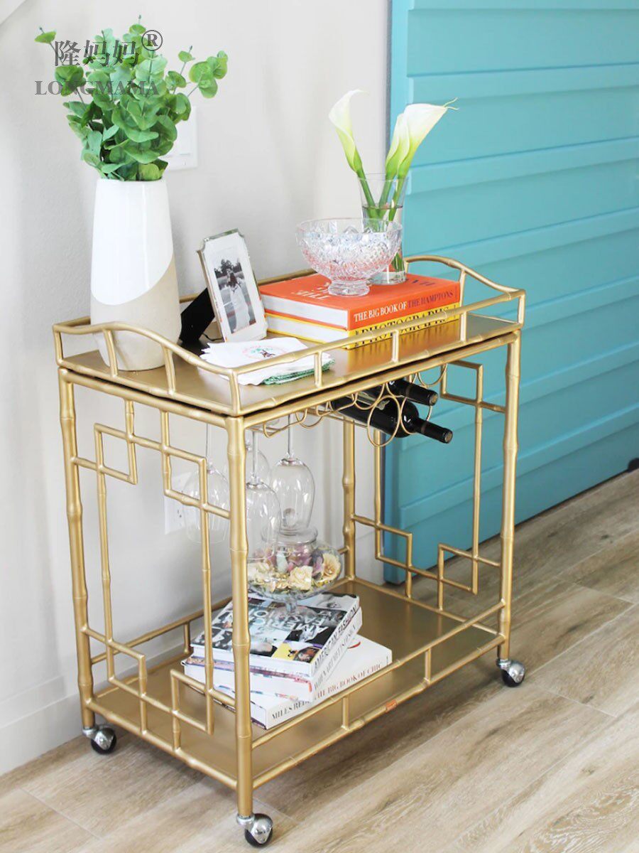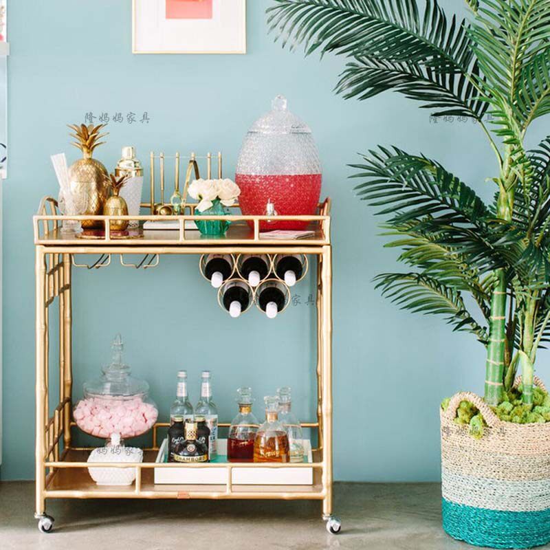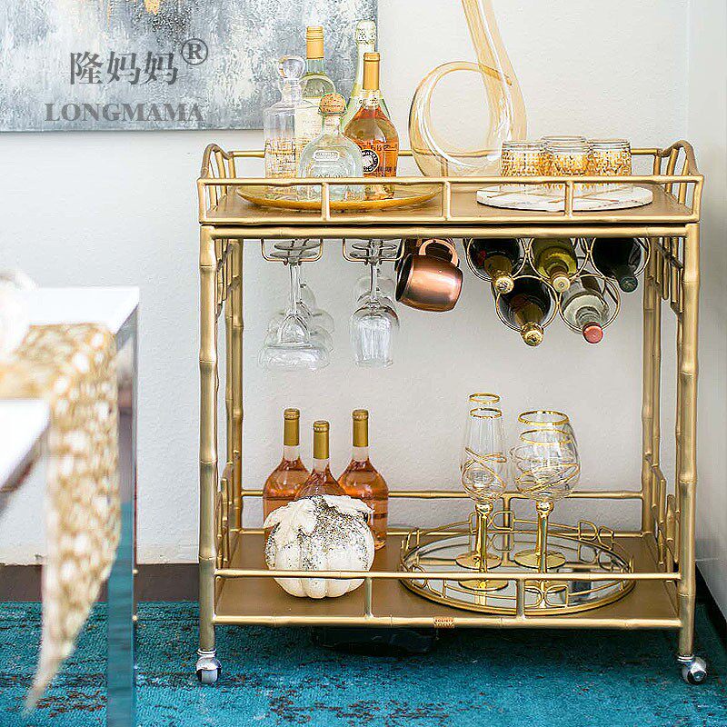 Wrought iron bamboo dining car wine cart home metal dining room bar mobile wine display Car bar dining car