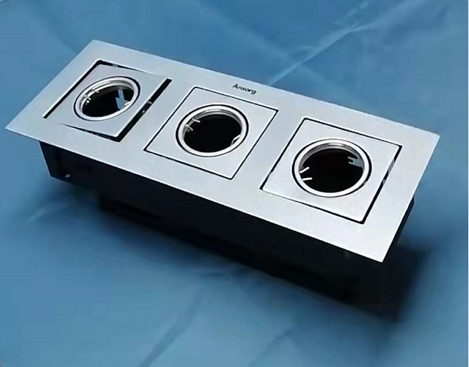 Anchamp MR16 triple head spotlight bucket liner lamp 12V die casting silver edge drilling 320X110 manufacturer spot
