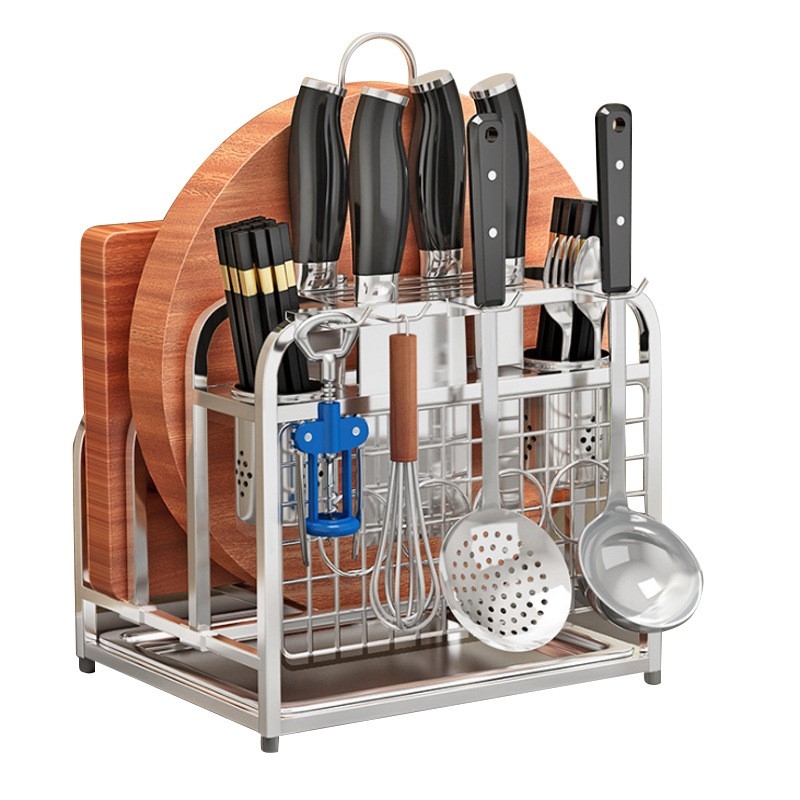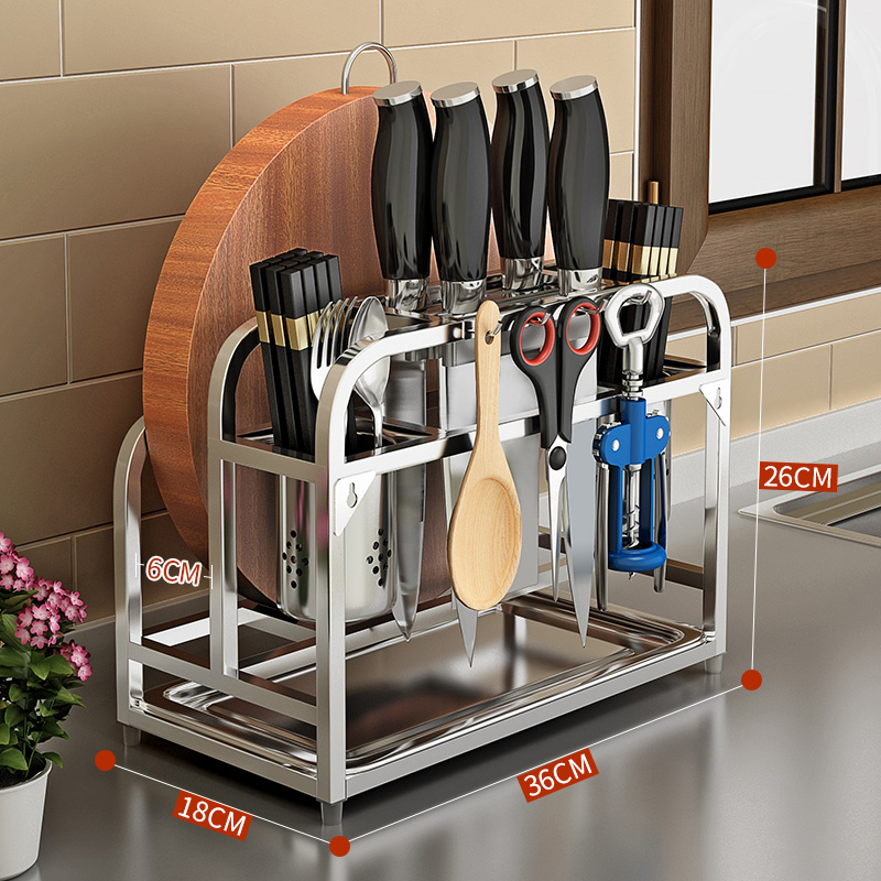 304 stainless steel food grade knife holder with double chopstick cylinder tool holder (upgrade) with PP chopstick cylinder tool holder with water receiving tray tool holder (base section)
