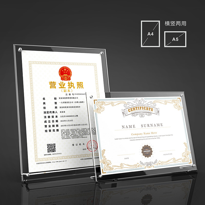 L-shaped transparent acrylic card stand stand A4 A5 double-sided desktop product advertising license Business license Photo frame certificate display card Table sign menu price card table table card wine menu