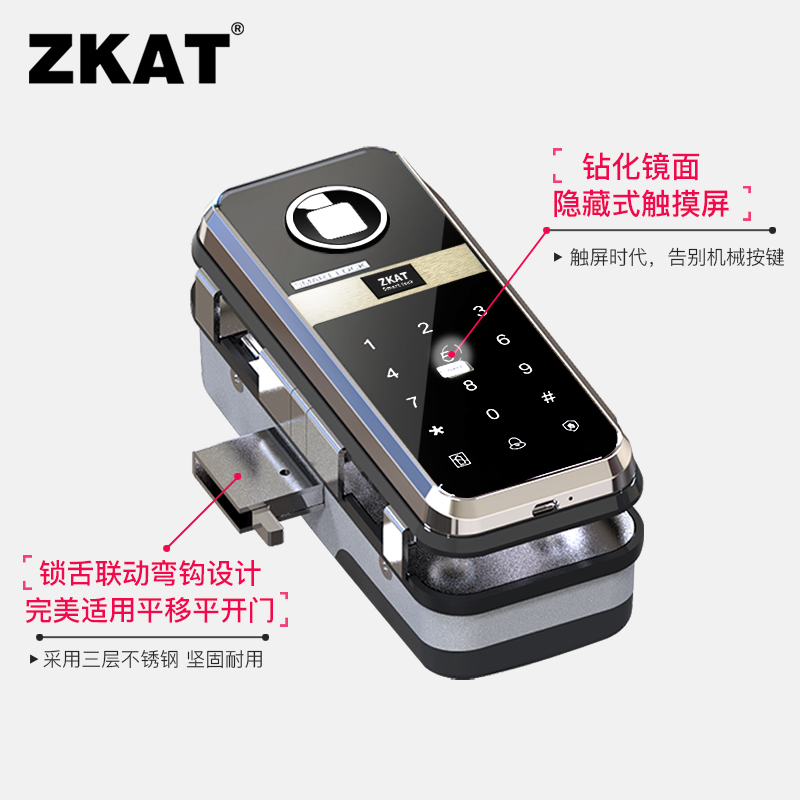 ZKAT glass door fingerprint lock free bore double door intelligent electronic password swiping company office attendance access control lock