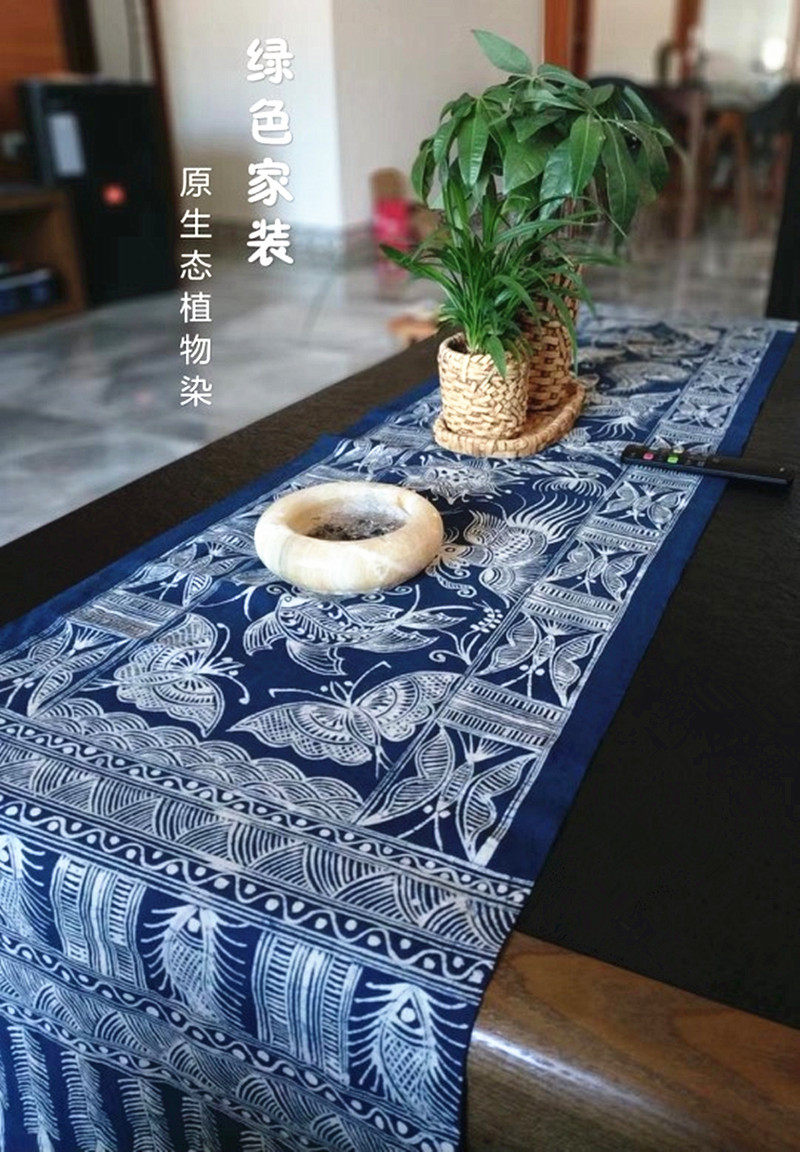 Guizhou Danzhai batik handmade pure plant dyeing table flag Hand-painted tablecloth home decoration handicrafts 280*30CM