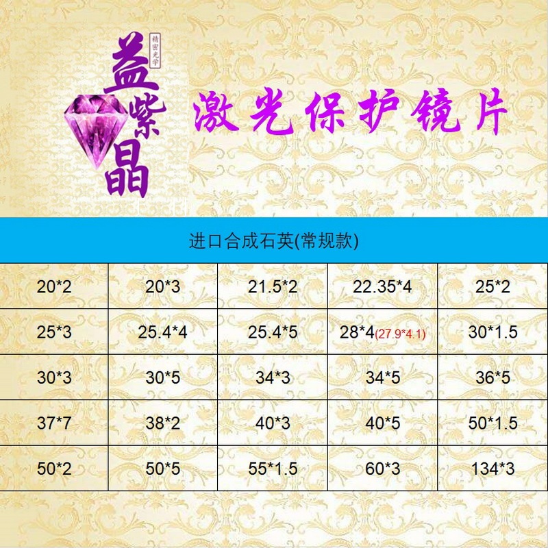 Laser protection lens source factory 27 9*4 1 imported quartz 30*5 34*5 37*7 welding 50*2