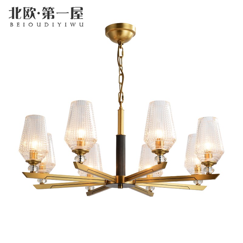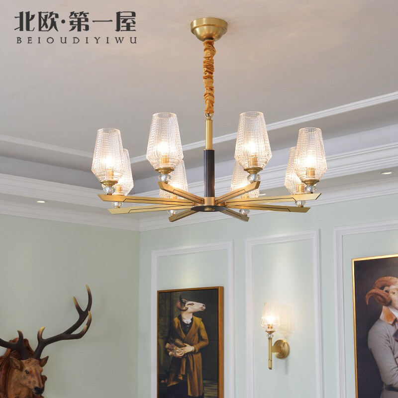 Postmodern light extravagant full copper living-room light bedroom dining room lamp creative personality minimalist glass hood Nordic full copper pendant lamp