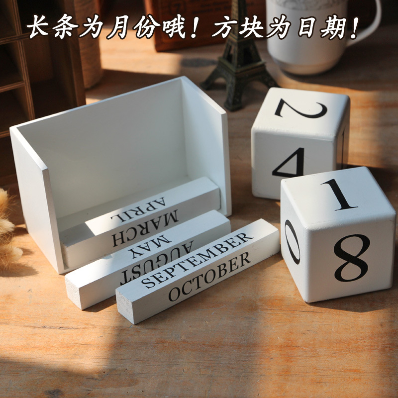 Nordic creative wooden calendar small ornaments table date card office desktop home decoration light luxury side