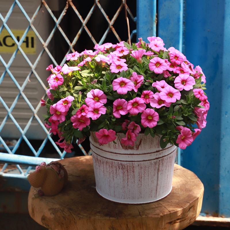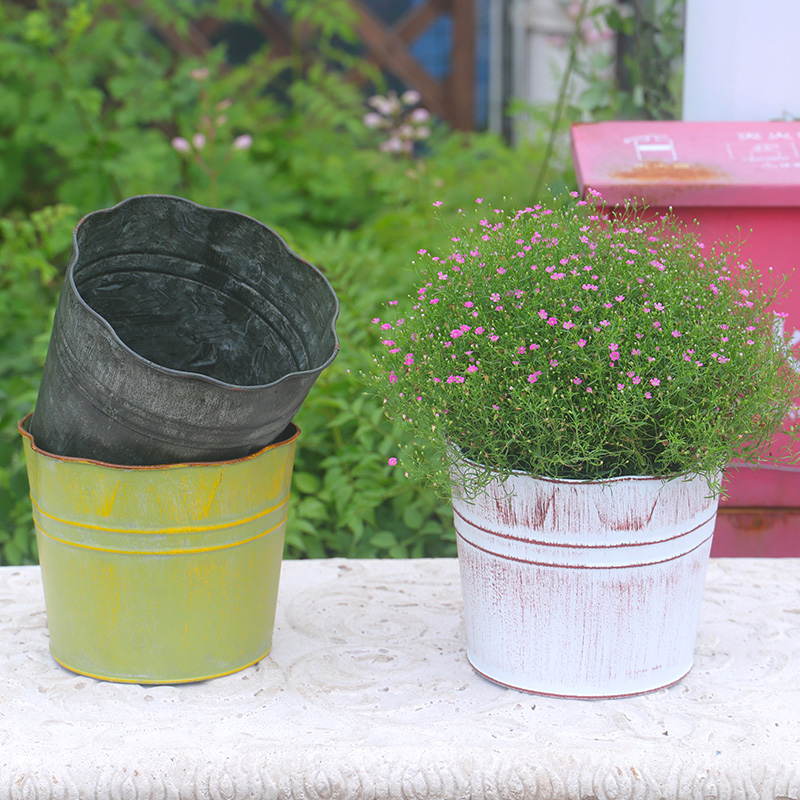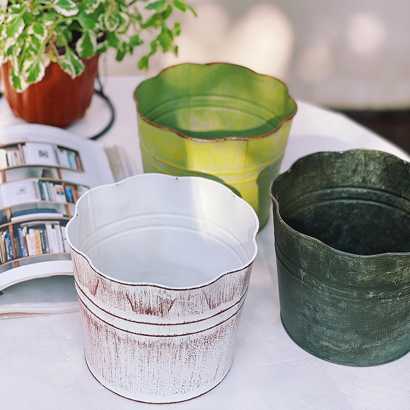 Iron Art Flowers Mouth sheet Tin Barrel Flowers Iron Barrel Shaped barrel Flower Shaped Mouth Indoor Balcony Garden Table Flower Pots