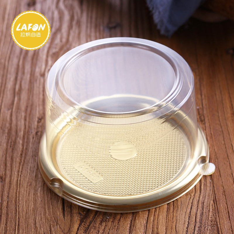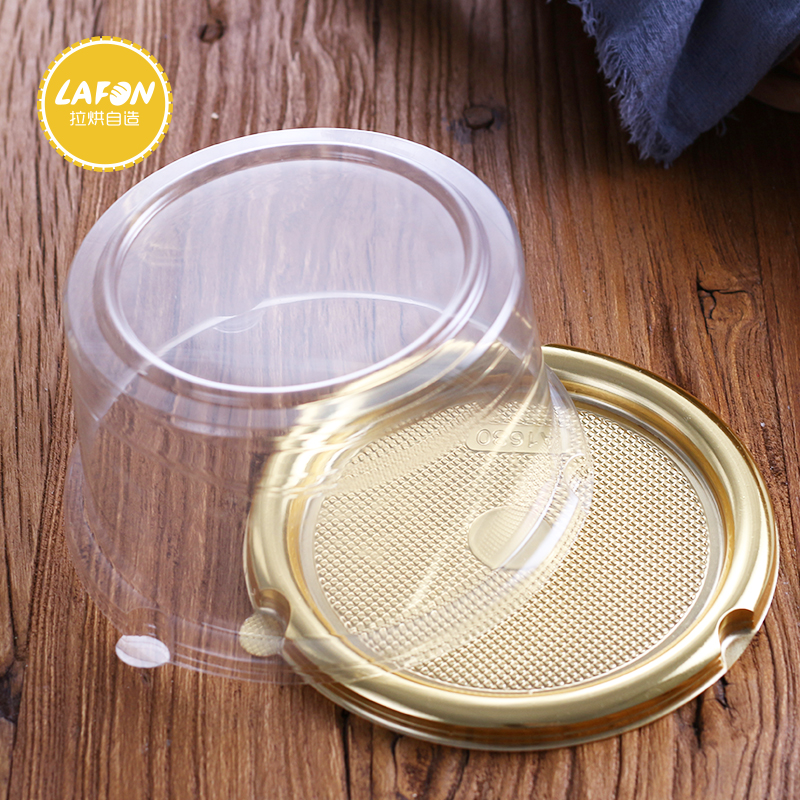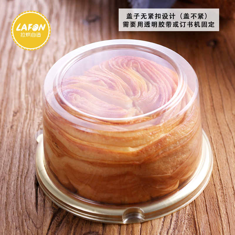 Golden hand tore bread box transparent plastic round West Point cake baking packaging box 50 sets