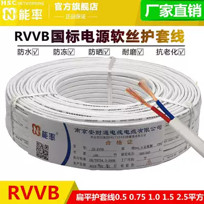 Pure copper RVVB2 core white sheathed wire Cable BVVB2 core 05 0 75 1 1 5 2 5 square power cord