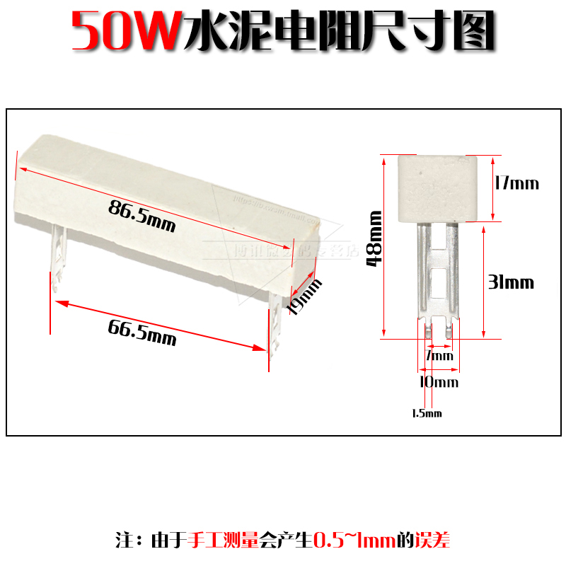 50W High power cement resistance 1R 2 3 4 5 6 8 10 12 15 15 25100 20 200 Ohm