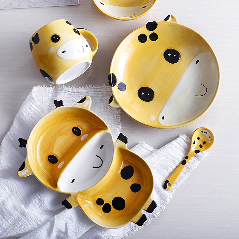 Rabbit rice bowl Rabbit water cup Rabbit disc Rabbit separator Rabbit spoon Giraffe rice bowl Giraffe water cup Giraffe disc Giraffe separator Giraffe spoon Little monkey rice bowl