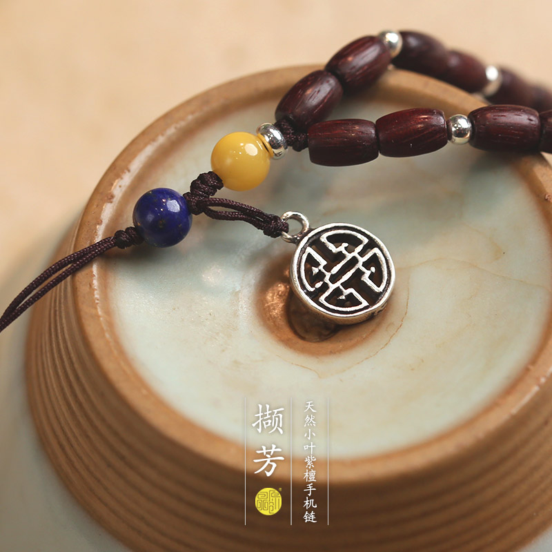 Original exquisite small leaf rosewood ethnic style mobile phone lanyard mobile phone chain key chain fashion creative birthday gifts
