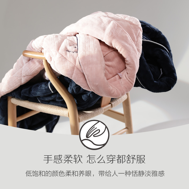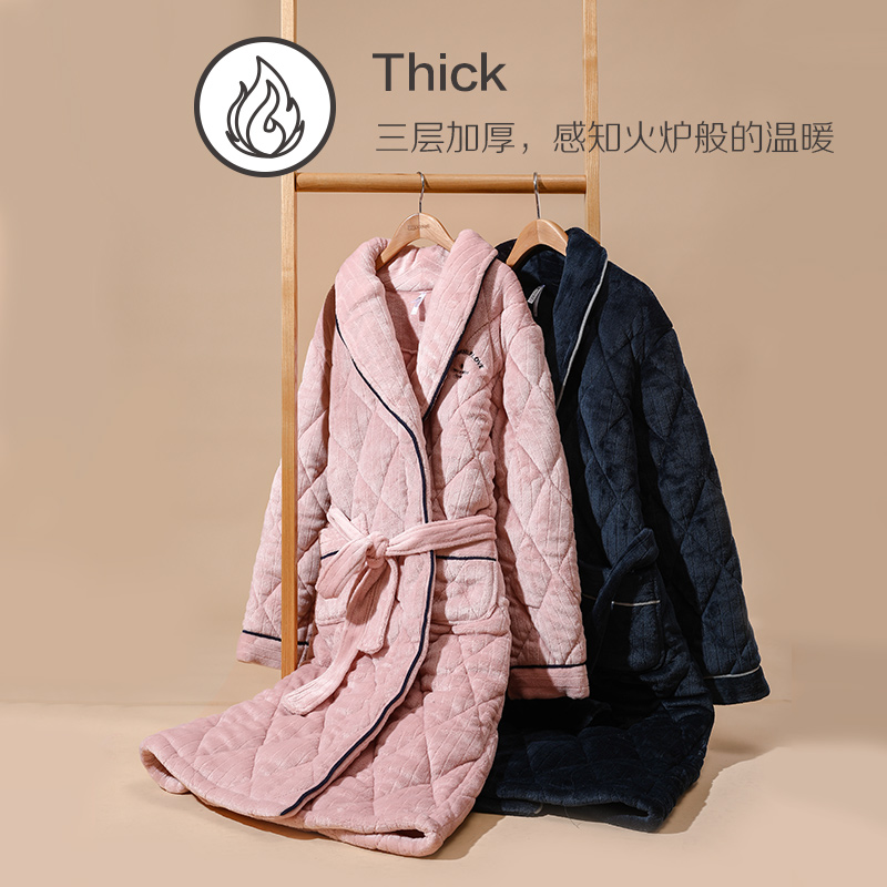 Red Bean Coral Suede Nip Cotton Sleeping Robe Couple Women's Winter Flannel Suede Home Autumn Winter Thickening Lengthened Warm Men's Home Clothing