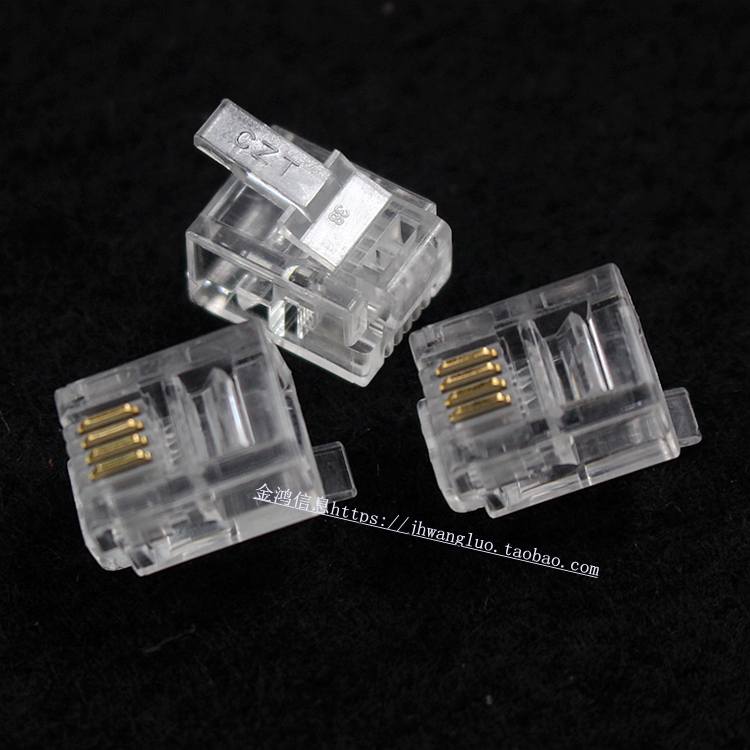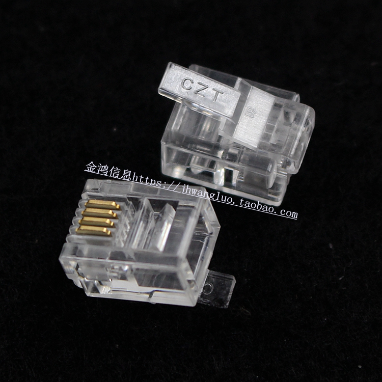 Original fit CZT Italian four core phone crystal head RJ11 voice telephone line 6p4c crystal head gilded copper sheet-Taobao
