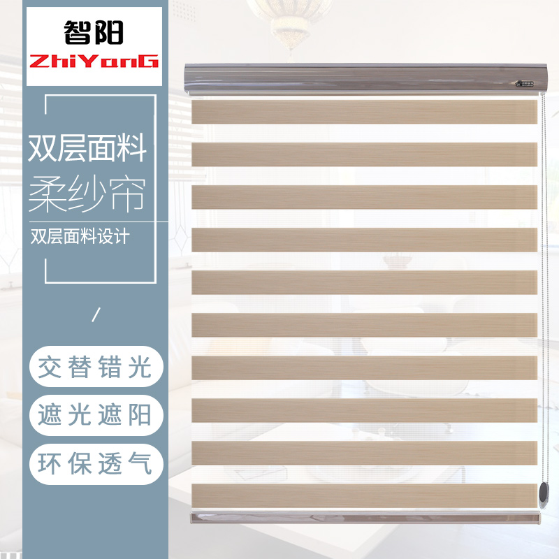 Electric soft yarn curtain Double roller curtain Bathroom powder room Waterproof shading shading automatic lifting household blinds