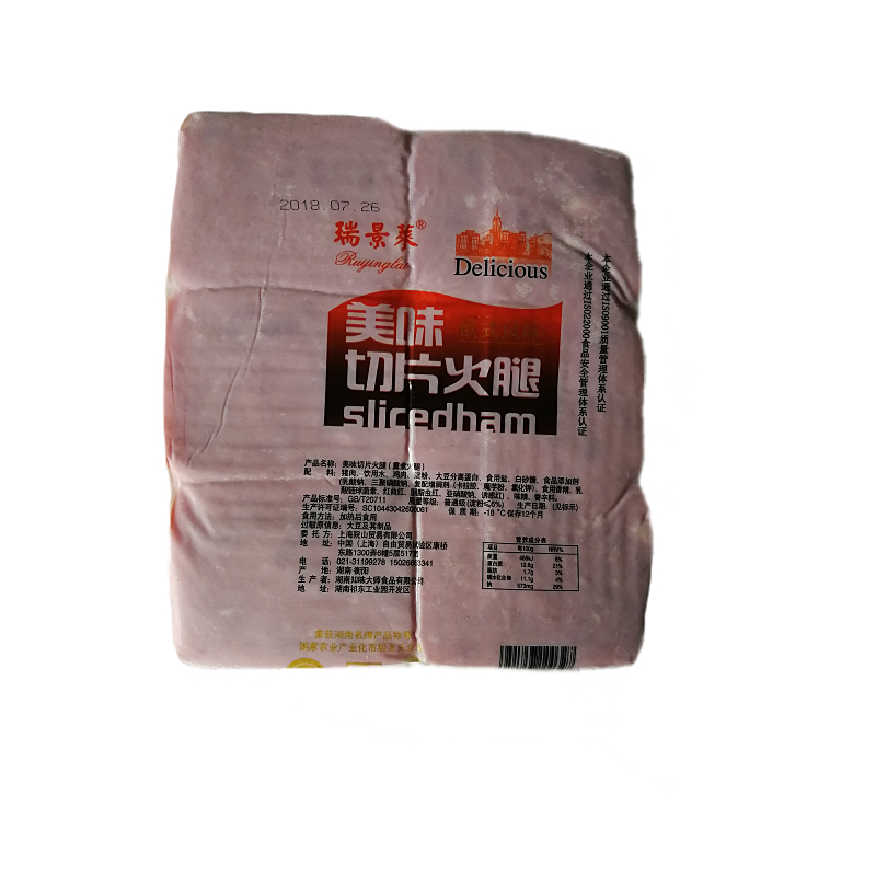 Ruijinglai square leg slices 2kg*10 packs Western ham slices Burger sandwich ingredients Jiangsu, Zhejiang, Shanghai and Anhui whole box