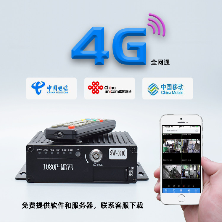 Vehicle 4-way monitor 4-way SD card recorder bus bus big truck 4G remote GPS positioning system