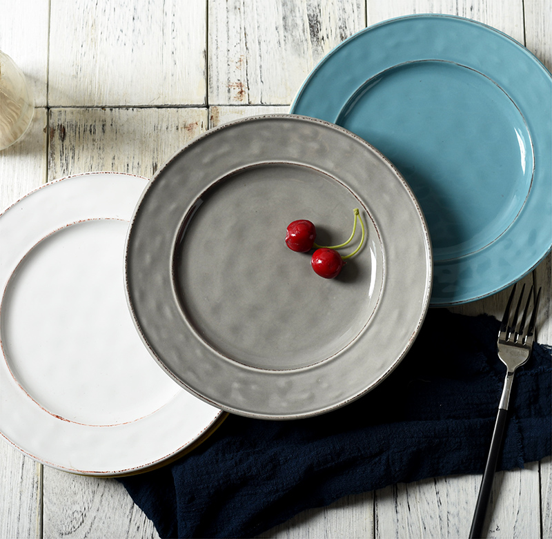Retro Corrugated Disc Creative ceramic cutlery Home dish Dish Pasta Pan-style breakfast disc minimalist disc-Taobao