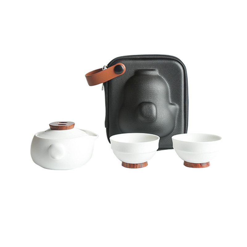 Ceramic Travel Tea Set Portable outdoor vehicle carrying 2 people Express Cup two cups simple tea set