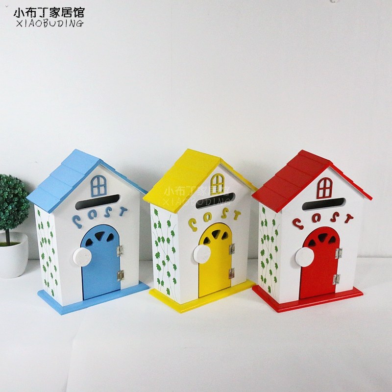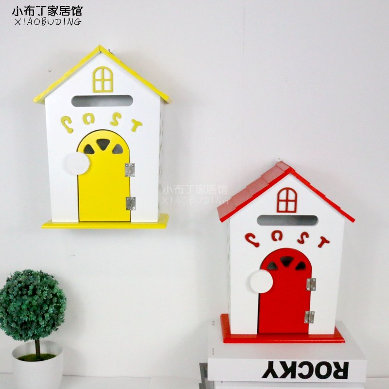 Mediterranean Home Wall-mounted Wooden Letterbox School Kindergarten Opinion Box Fields Garden Painted Civilian Creative Chalet