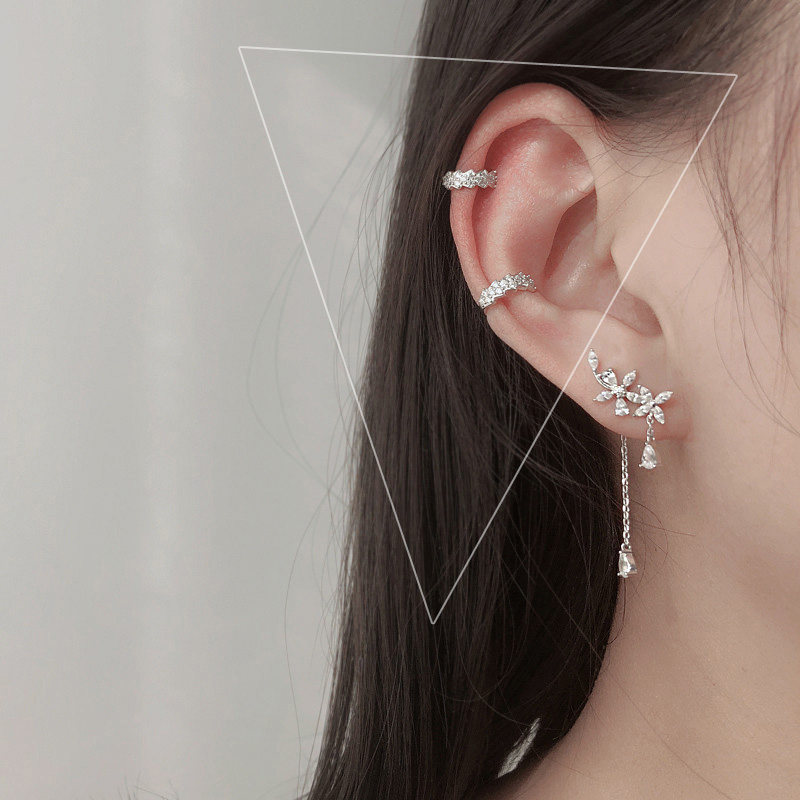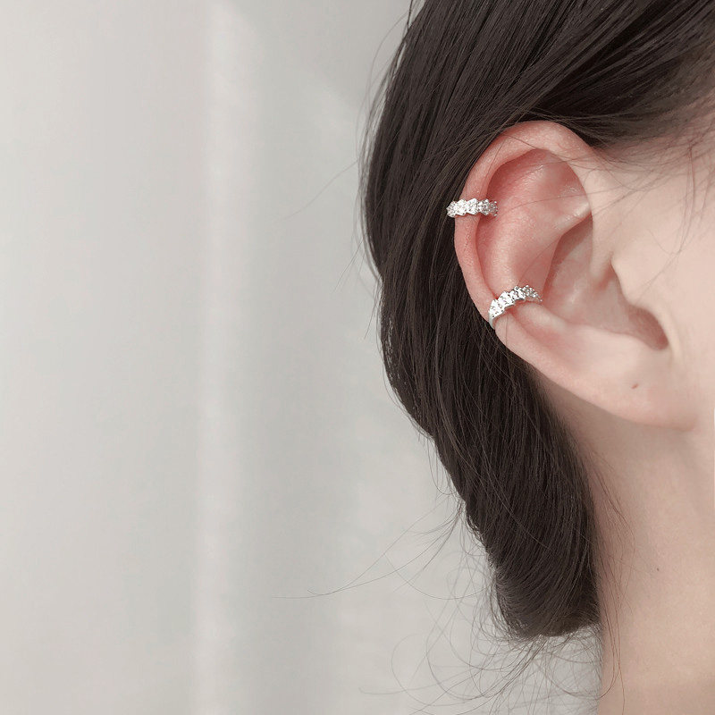 Earless Ear Bone Clip 925 pure silver Delicate Inlaid Drilling Earrings Personality Korean version without earbuts for ear holes