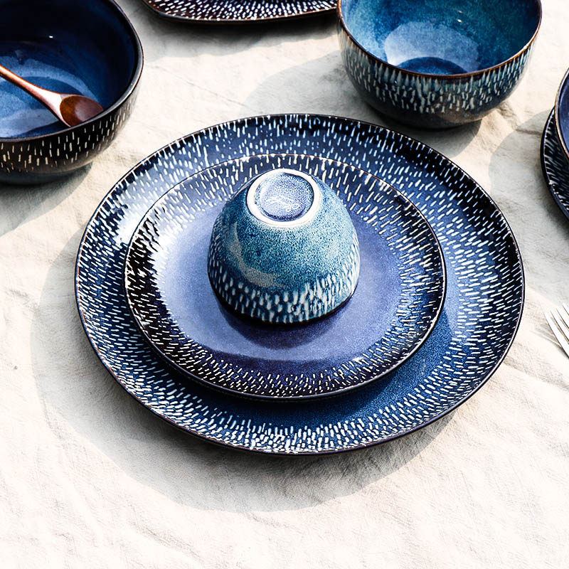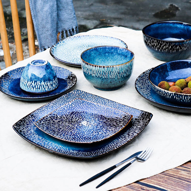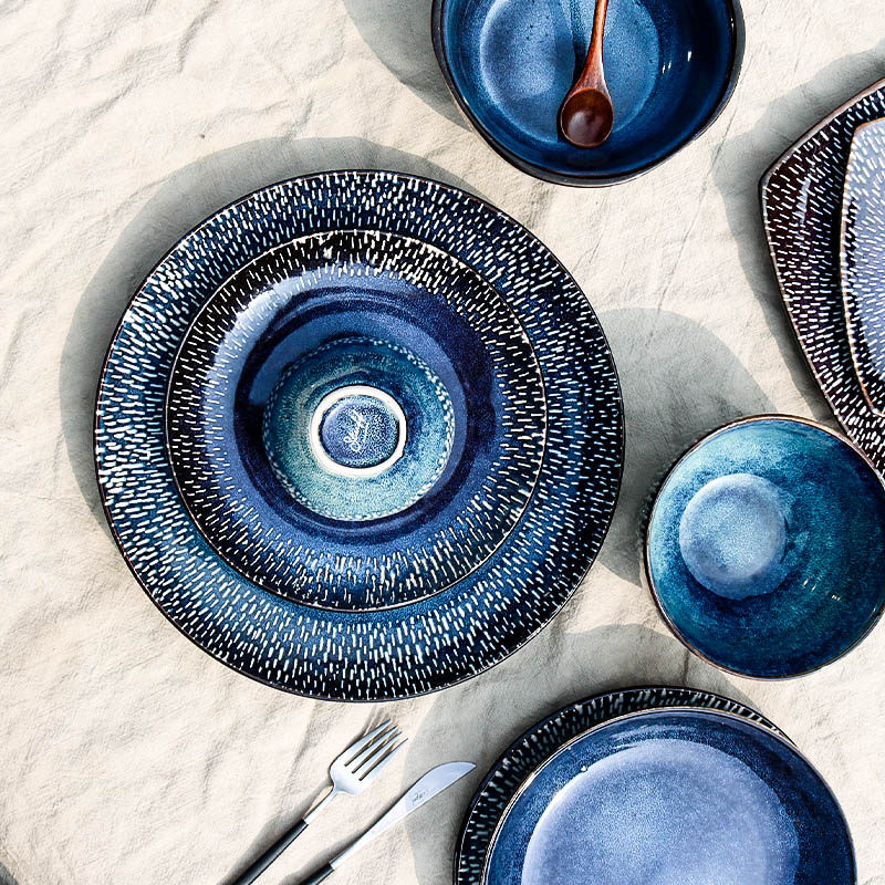6 inch hand-painted dark bowl 8 inch hand-painted side plate 8 inch hand-painted deep soup plate 11 inch hand-painted dark plate 5 inch hand-painted small bowl
