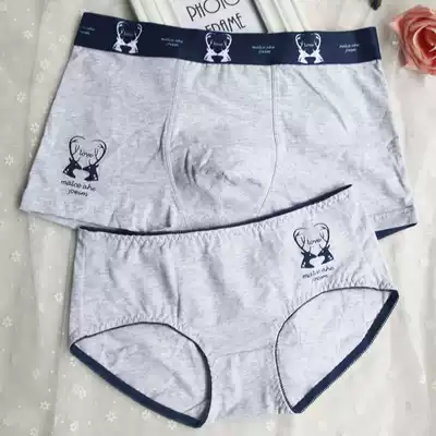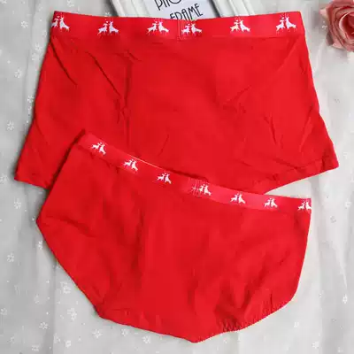 This year of life red couple panties female cute deer pure cotton underwear set creative personality men's boxer female triangle
