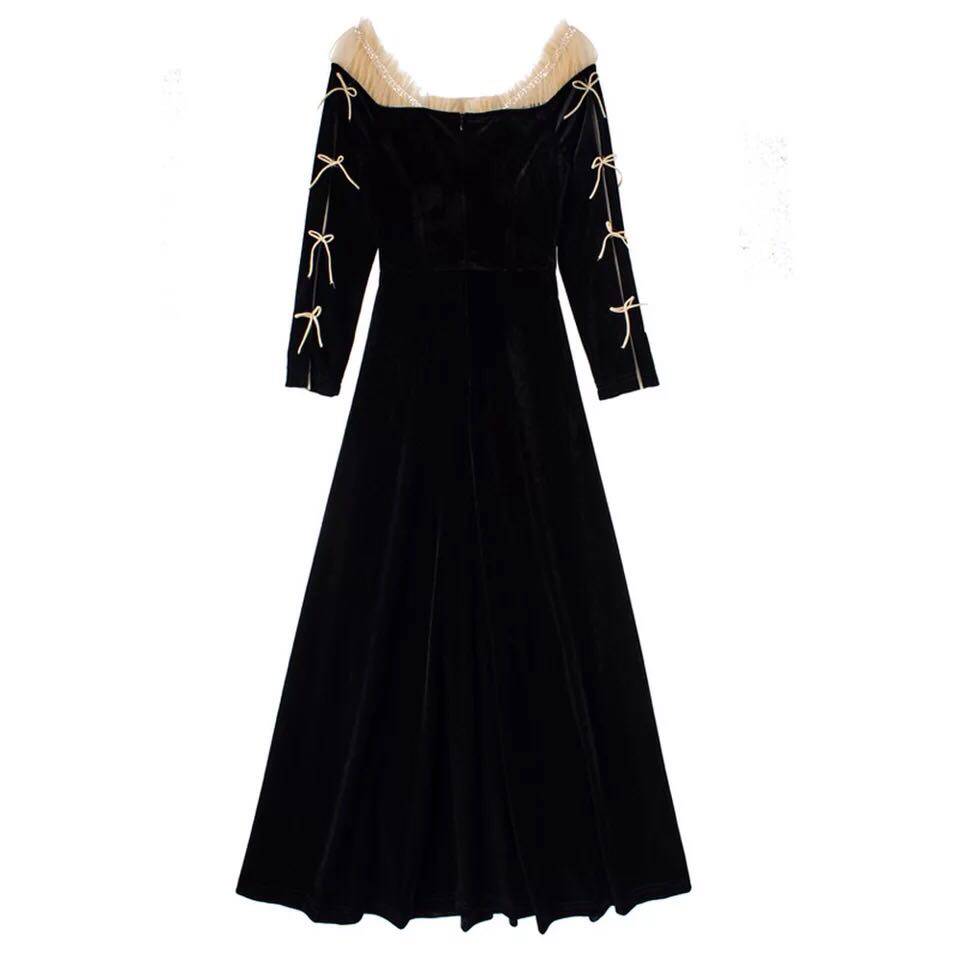 Cherry France Maje Autumn Winter Ocean Dress Palace Silk Suede Lace Gown