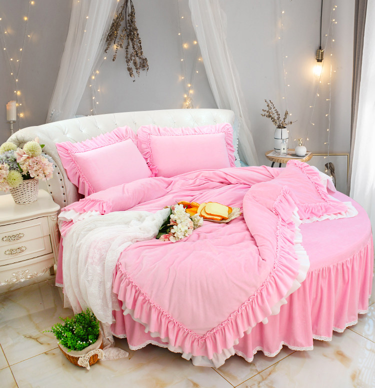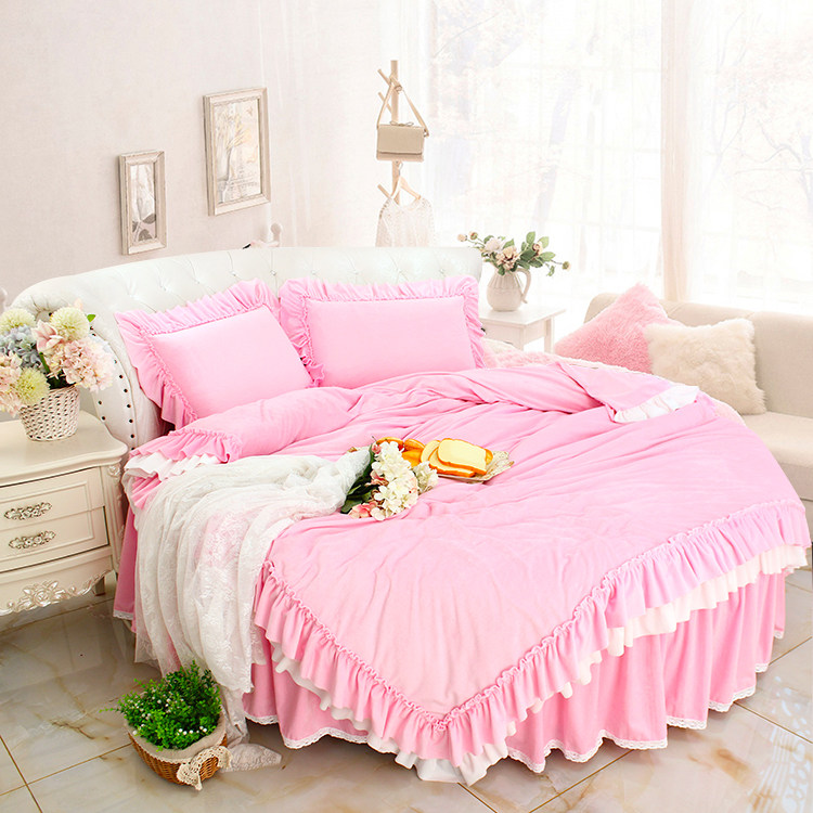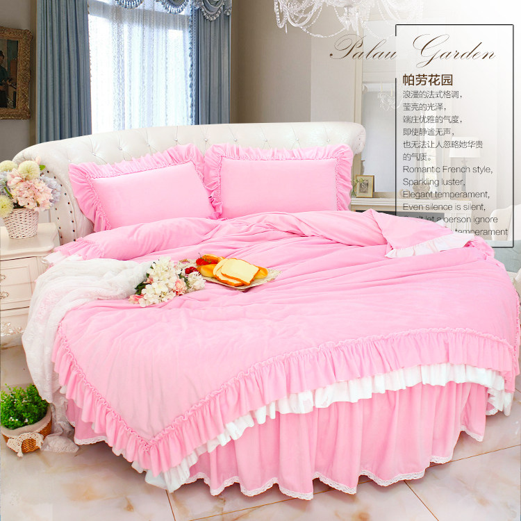 Girl heart double-sided velvet Princess wind coral velvet crystal velvet Winter warm thickened round bed four-piece set bed skirt duvet cover