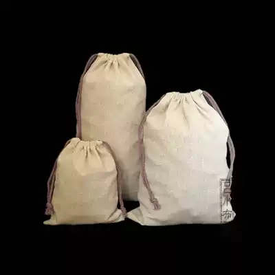 Thickened linen bag drawstring corset mouth dry goods bag cotton linen bag for grain tea has good air permeability