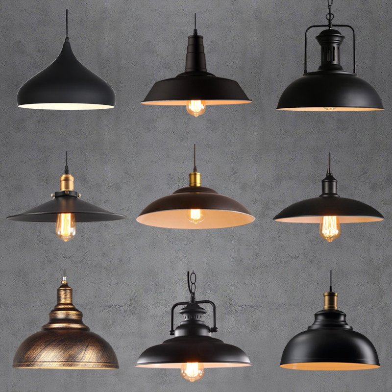 LED industrial wind chandelier American restaurant chandelier retro single head wrought iron pot cover small chandelier simple bar lamp