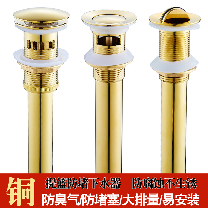 Gold sink All copper bouncing basin washbasin Antique washbasin sink flip plate water remover