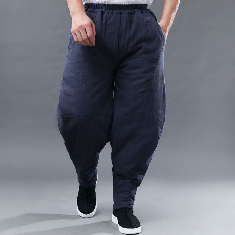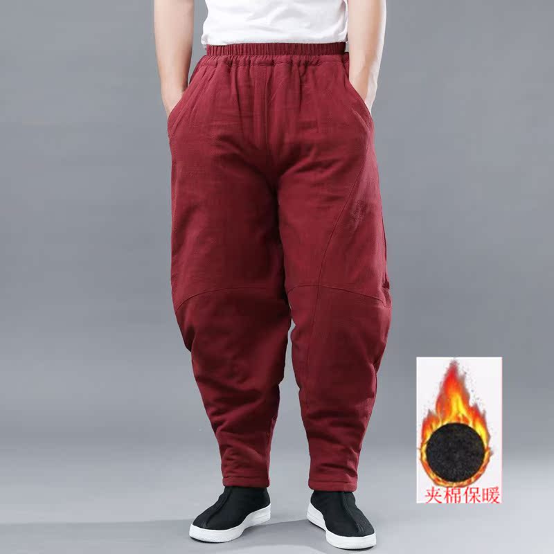 New Winter Linen Zen cotton pants Men's Han clothes Winter Chinese retro style Ancient Wind Black Warrior Thicken laminated wool-cold monk pants
